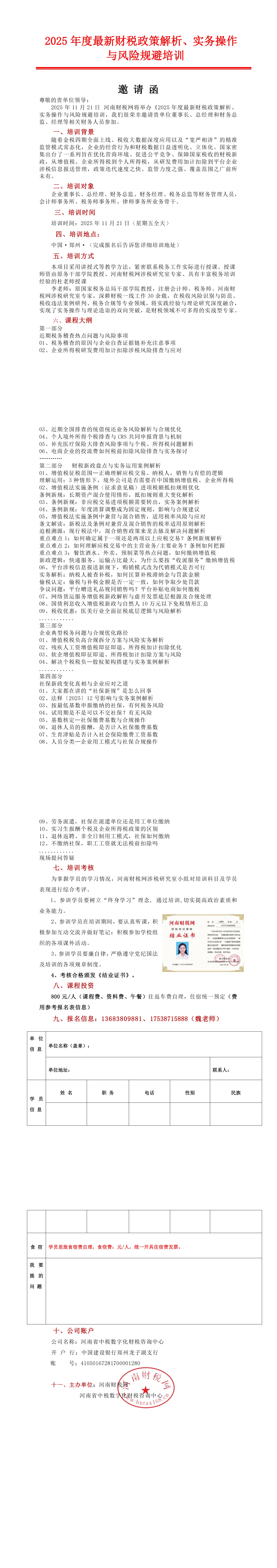 【培训通知】2025年最新财税政策解析、实务操作与风险规避培训