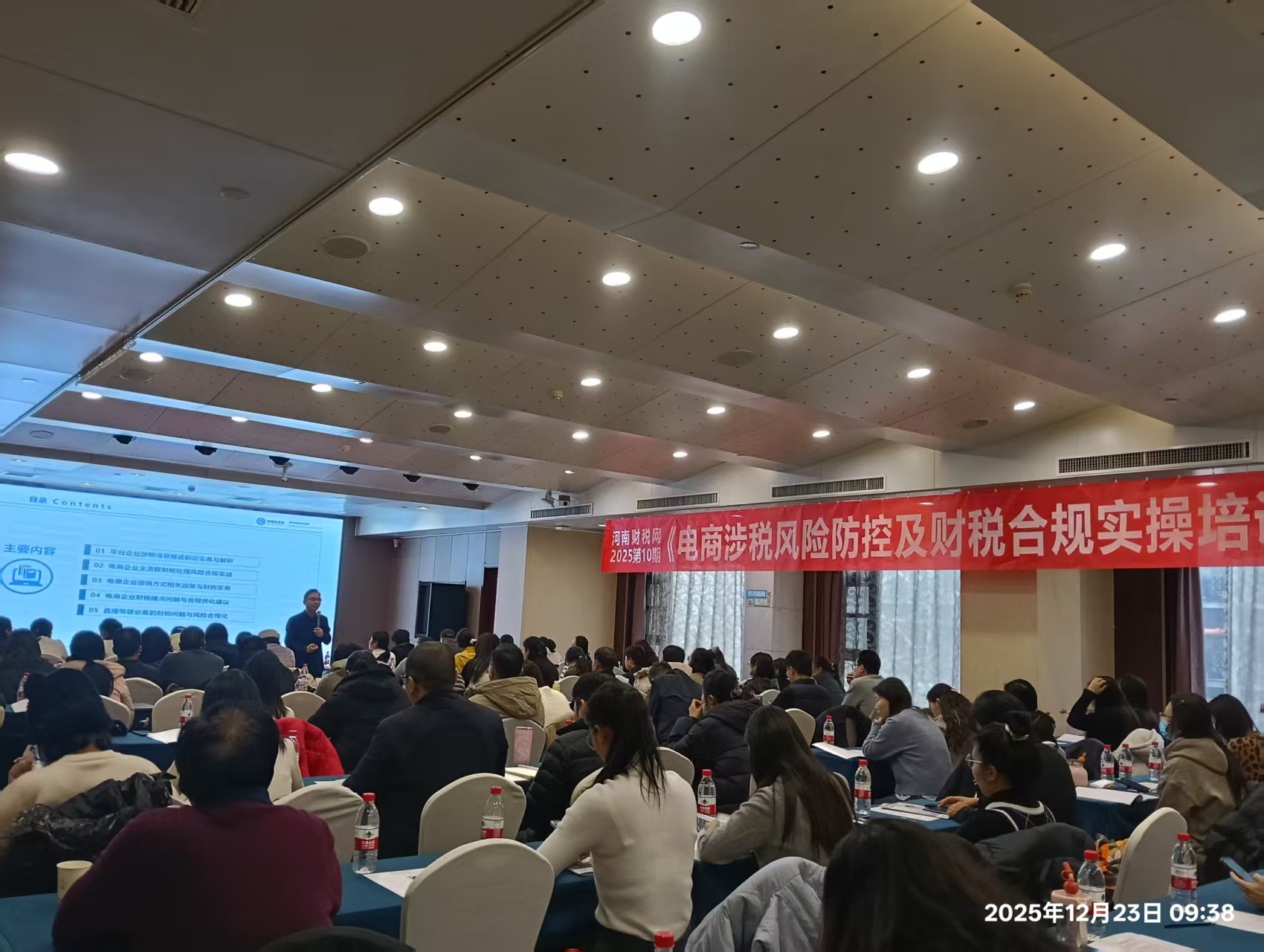 2025 年 12 月 23 日,由河南财税网组织的 **《电商涉税风险防控及财税合规实操培训》** 在郑州圆满落幕。本次培训吸引了 126 家电商企业代表到场参训,课程内容兼具专业性与实操性,讲师凭借通俗易懂的授课风格,精准破解电商企业财税合规痛点、难点,赢得参训学员的一致好评。