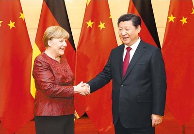 图为:2015年10月29日,国家主席习近平在北京钓鱼台国宾馆会见德国总理默克尔。