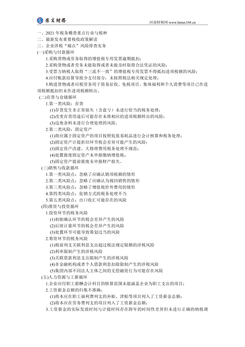 智慧税收征管时代企业风险排查及纳税规划专题培训