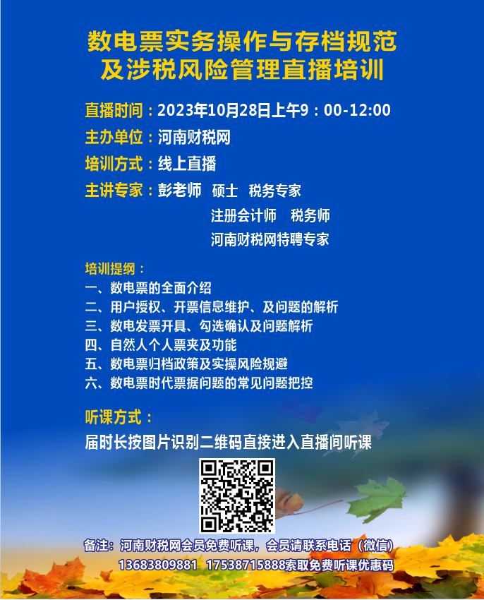 数电票实务操作与规范存档及涉税风险管理直播培训