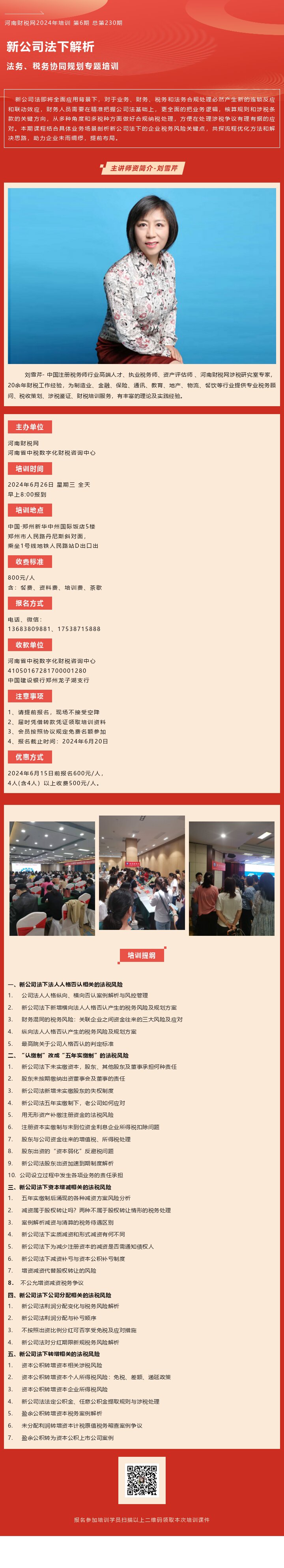 【培训通知】新公司法下解析:法务、税务协同规划专题培训