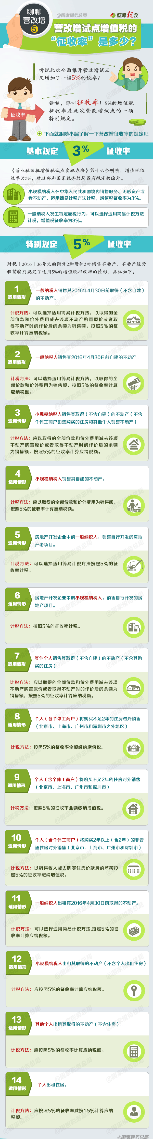 听说此次全面推开营改增试点又增加了一档5%的税率?错啦,那叫征收率!5%的增值税征收率是此次营改增试点的一项特别规定。戳图了解营改增征收率的相关规定↓
