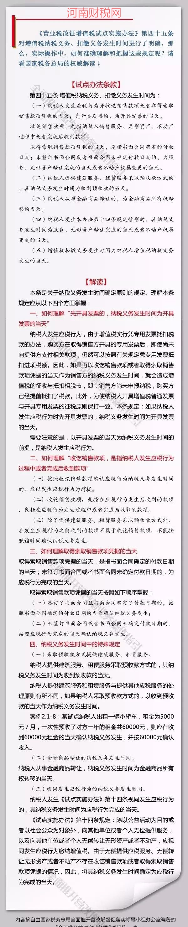 《营业税改征增值税试点实施办法》第四十五条对增值税纳税义务、扣缴义务发生时间进行了明确,那么,实际操作中,如何准确理解和把握这些规定呢?请看国家税务总局的权威解读↓