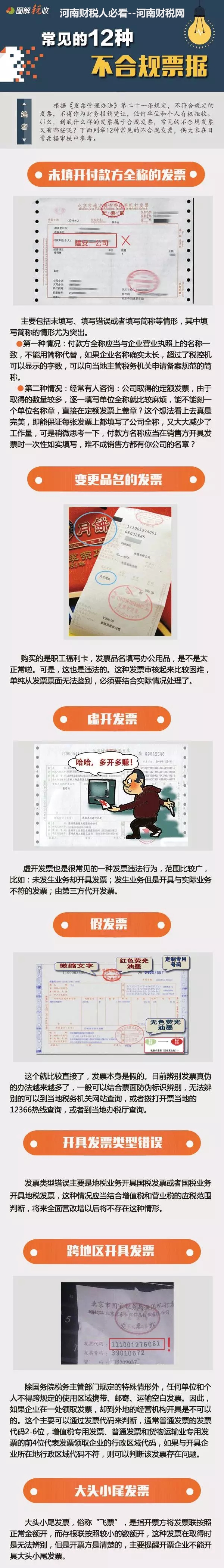 根据《发票管理办法》第二十一条规定,不符合规定的发票,不得作为财务报销凭证,任何单位和个人有权拒收。那么,到底什么样的发票属于合规发票,常见的不合规发票又有哪些呢?下面列举12种常见的不合规发票,供大家在日常票据审核中参考。